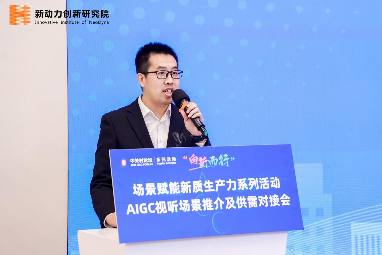 中关村朝阳园管委会产业促进一处处长陈磊介绍朝阳区AIGC产业集群发展情况