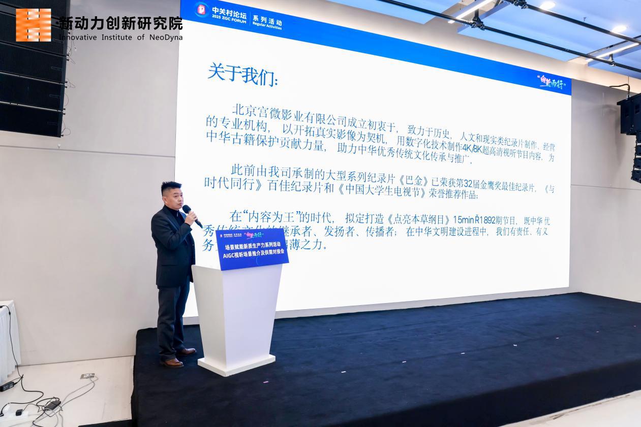 在重点应用场景项目推介环节,多家企业发布了AIGC在医药模拟、文化服务、内容出海等领域的前沿需求与解决方案。北京宫微影业有限公司、北京中文在线阅读教育科技有限公司、北京艺鼎传奇文化传播有限公司等三家企业围绕场景牵引技术创新,发布了科技新场景项目需求。