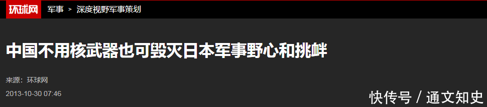 2013-10-30 07:46 环球网 中国不用核武器也可毁灭日本军事野心和挑衅