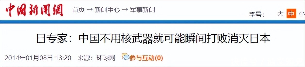 2014-01-08 13:20 中国新闻网 日专家:中国不用核武器就可能瞬间打败消灭日本
